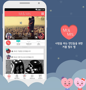 미스터 앤 미세스는 비트윈과 마찬가지로 메시지 전송이 가능한 커플전용 앱이다. 간단한 가입을 통해 시작할 수 있으며 상대방 또한 가입을 해야 앱을 이용할 수 있다. 기본적으로 사진전송 기능과 이모티콘 기능이 있다. 기본 화면에서는 만난 날과 상대방의 기분을 볼 수 있도록 되어 있으며 중요 기념일과 알림 창을 볼 수 있다. 주요 기능으로는 서로에 대한 존중과 사랑을 지켜나갈 수 있도록 도와주는 사랑서약서 기능, 연애를 하면서 해봐야 할 리스트를 작성하고 추억을 쌓도록 도와주는 버킷리스트 기능, 사진과 간단한 메모를 남길 수 있으며, 긴 글을 남길 수 있도록 만들어진 추억상자 기능, 더불어 미스터 앤 미세스만의 특별한 기능인 상대방이 볼 수 없으며 연애에 도움을 주는 시크릿 미션과 공동 미션인 스페셜 미션 등이 있다.