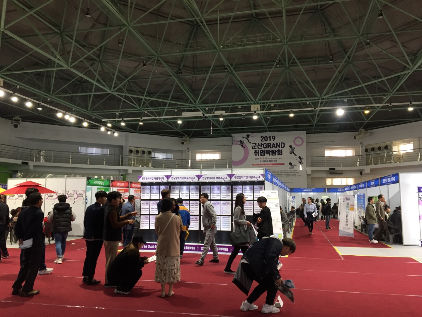 지난 7일 우리 대학 종합체육관에서 ‘2019 군산 GRAND 취업박람회’를 개최했다. 이 취업박람회는 청년과 취업 취약계층에게 다양한 취업 정보와 취업 기회를 제공하여 일자리 창출과 고용안정을 통한 지역 경제 활성화를 도모하고자 개최되었다.